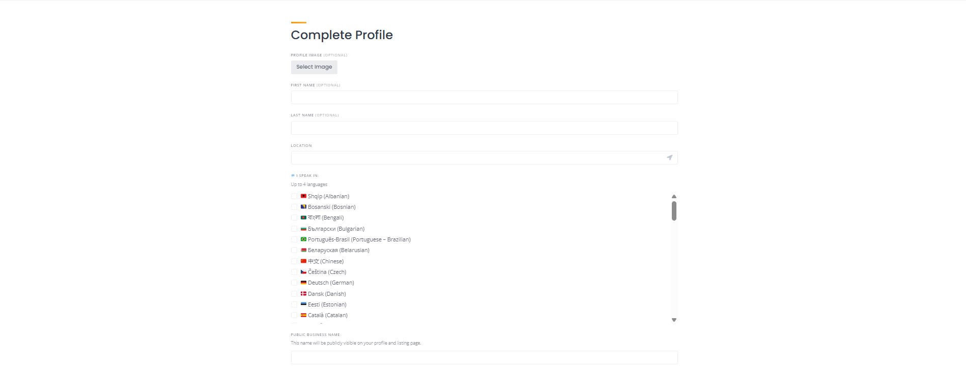 After logging in, complete your profile by adding your basic information such as your name, location, and up to 4 languages you speak.