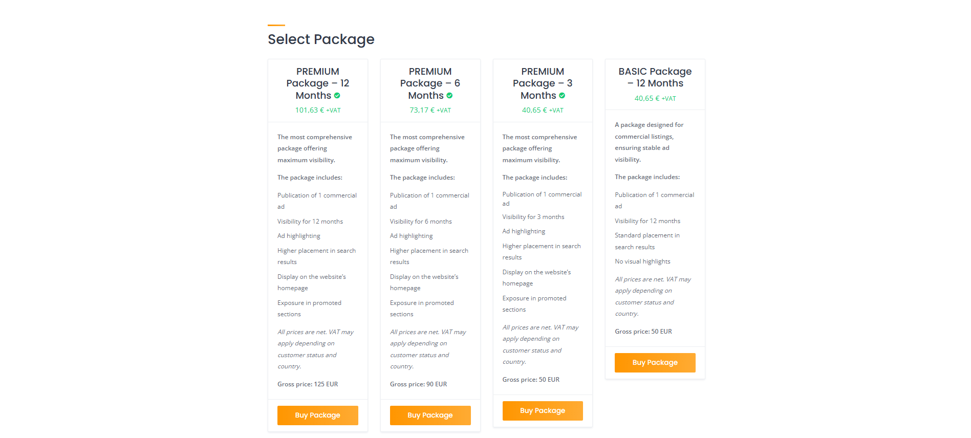 Choosing the right package increases your chances of getting more inquiries.