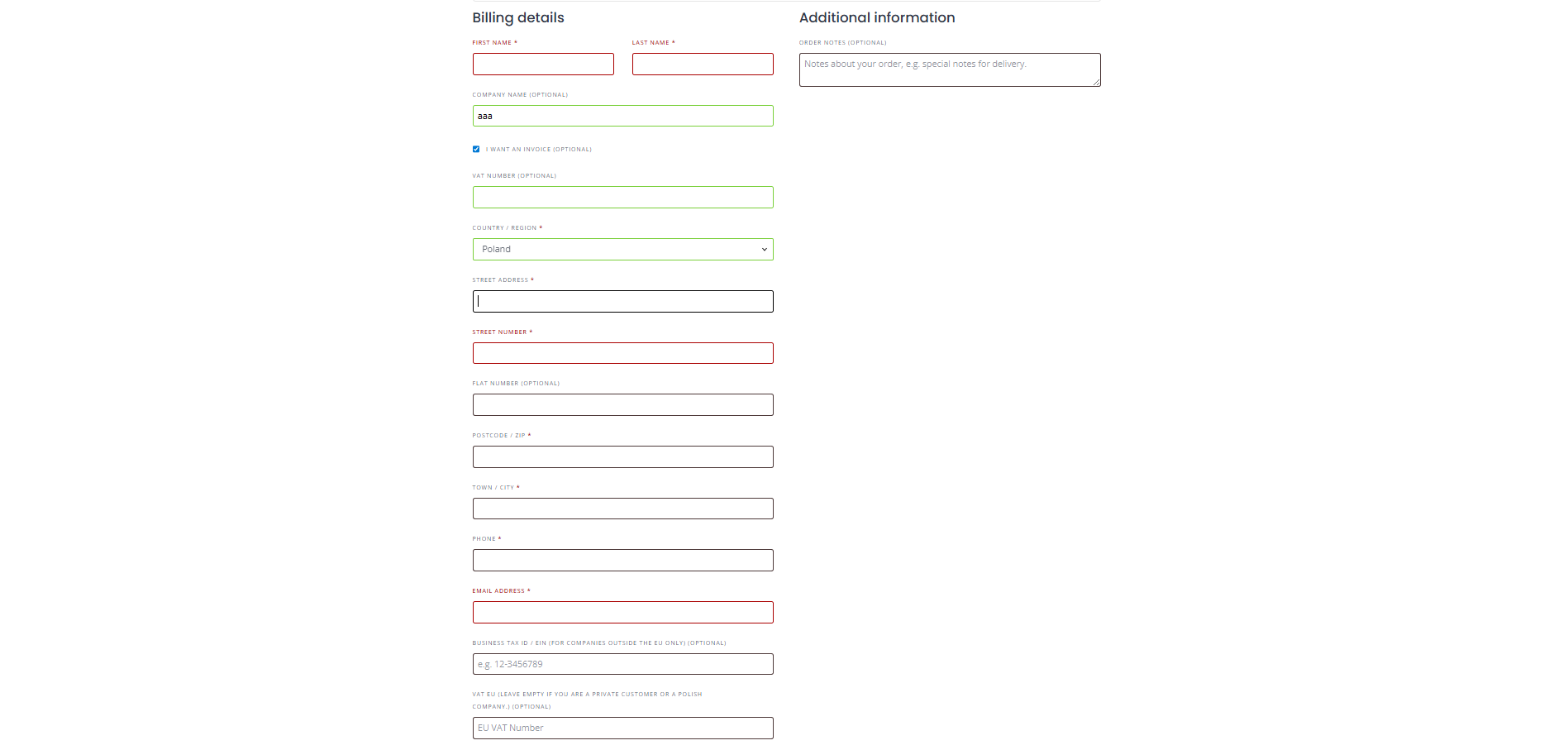 Polish customers: enter your NIP once.